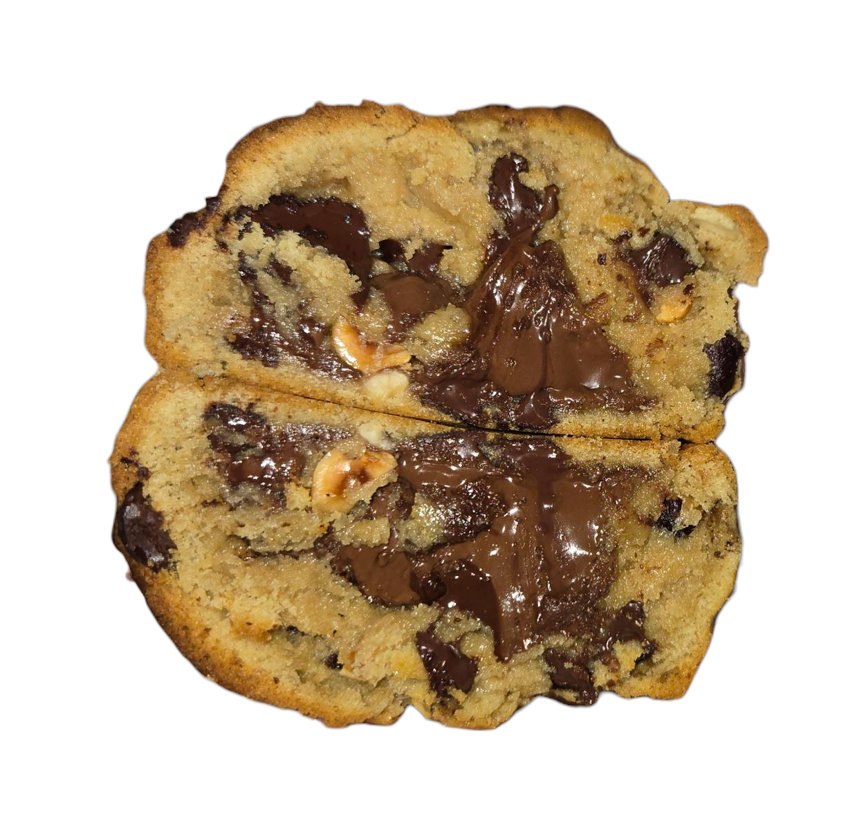 An unforgettable vanilla cookie filled with hazelnut cream, white chocolate chips, and toasted hazelnut pieces. Immerse yourself in this combination of flavors.